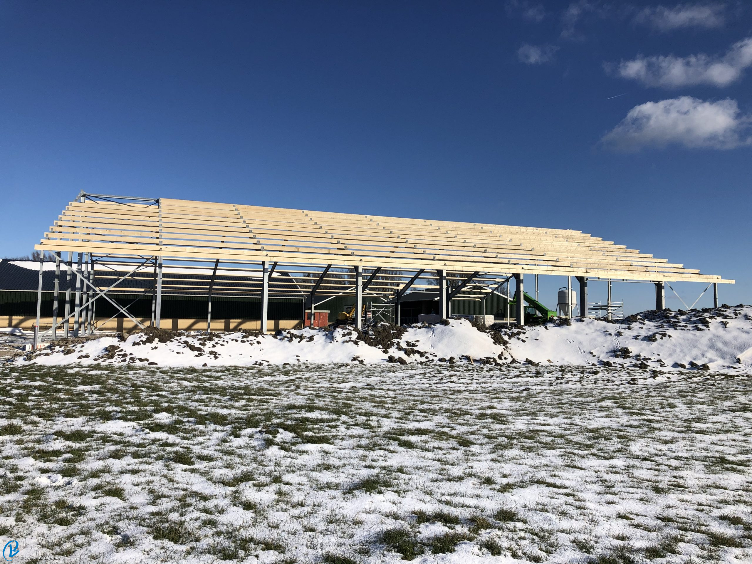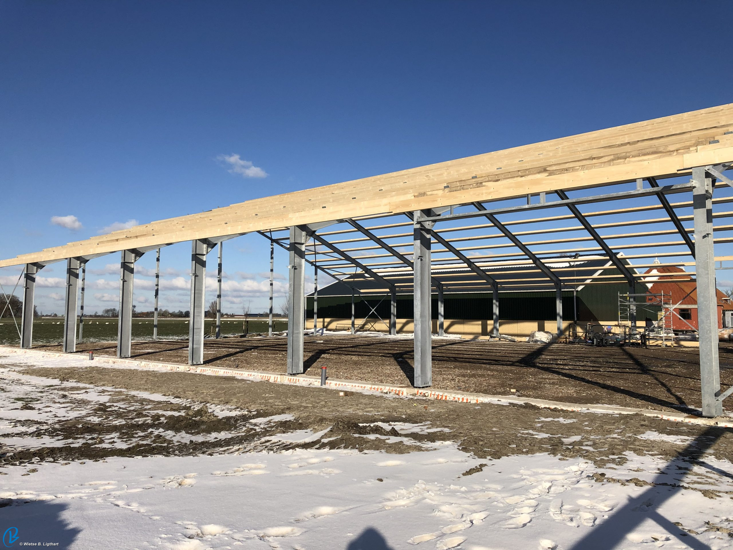 Voor opdracht van Liesbeth de Jong heeft Wietse B. Ligthart Bouw-Tekenburo deze nieuwe in aanbouw zijnde trainingshal ontworpen. Door de mogelijkheid van het agrarisch gebruik op deze locatie waar ook loonbedrijf R. de Jong is gevestigd is was een omgevingsvergunning mogelijk. De sterkteberekening voor de fundering en bovenbouw zijn door ons gemaakt. In bouwteam samen met Ate de Jong te Arum en Marco Terpstra bouw wordt de bouw uitgevoerd.